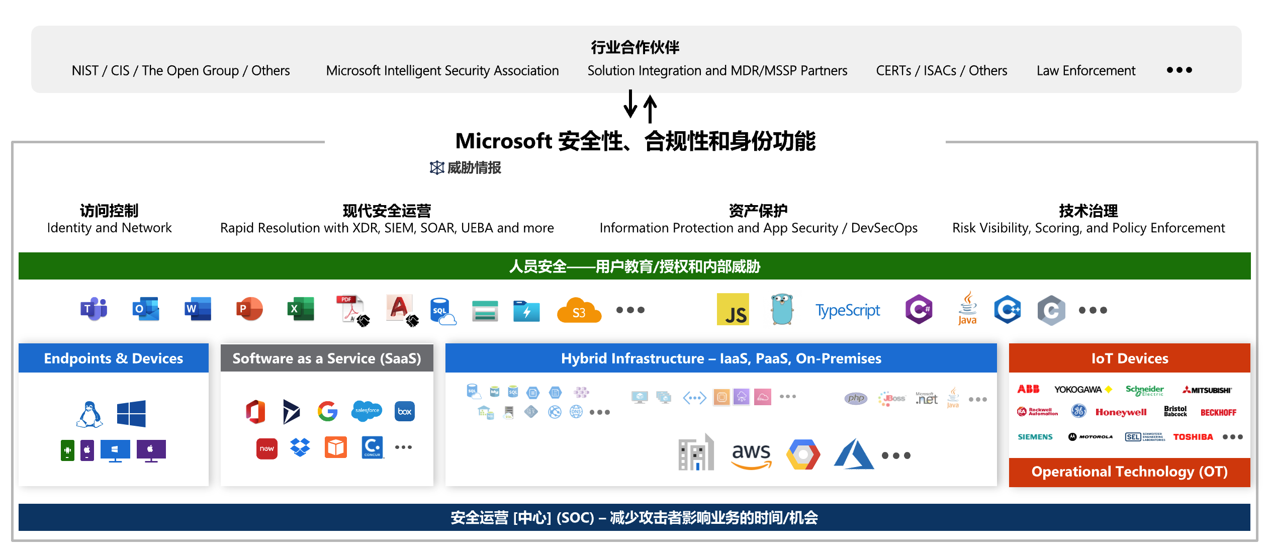 Microsoft 还专注于从我们的全球客户和合作伙伴网络(包括解决方案集成和 MDR/MSSP 合作伙伴)、NIST、CIS 和 The Open Group 等组织、CERTS、ISAC、执法机构(用于僵尸网络清除)中引入安全专业知识和情报等等。