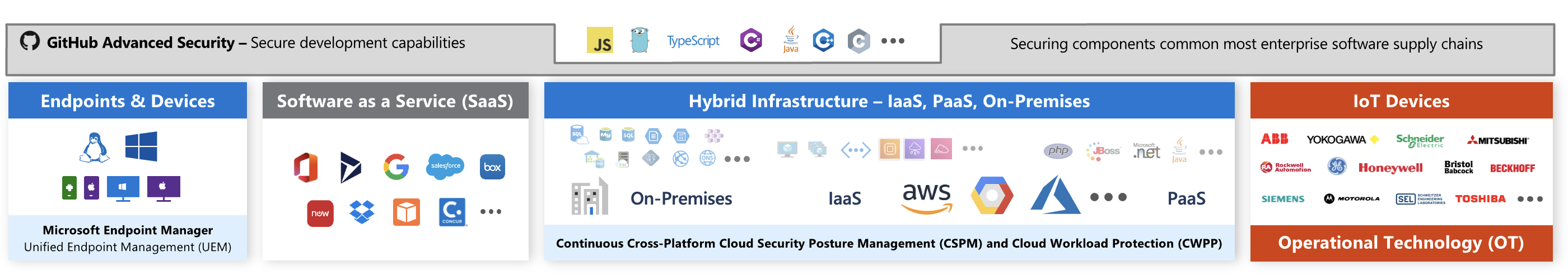 当今大多数组织都在运行一个复杂的环境,其中包括众多操作系统平台、SaaS 云服务和 IaaS/PaaS 云提供商。 根据您的行业,这通常还包括各种操作技术(也称为 SCADA、ICS 或 PCN)和物联网设备