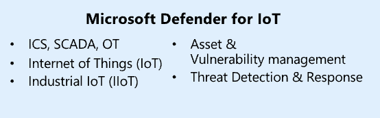 •Microsoft Defender for IoT(和 OT)为 SCADA、ICS 和工业物联网 (IIoT) 等运营技术 (OT) 设备提供威胁检测和响应功能