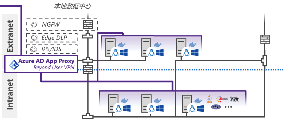Azure AD 应用代理通过简化用户对本地资源的访问并通过条件访问(明确验证用户和设备信任,零信任原则)实现安全性,将现代访问控制方法(安全边界)扩展到本地资源。