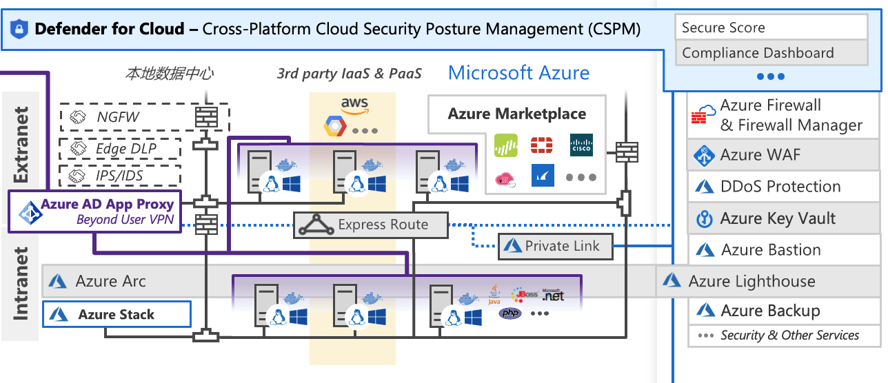 Microsoft 已投资于广泛的功能,以帮助保护混合多云环境及其中的工作负载。这些内置在 Azure 中,并且有几个使用 Azure Arc 扩展到您的混合基础架构资产(本地、AWS、GCP 和其他云)。