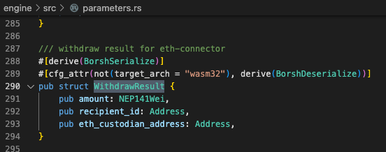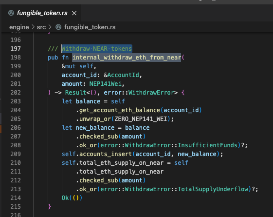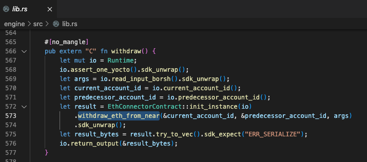 当ETH侧发起转账时,Aurora侧withdraw_eth_from_near的会进行处理。