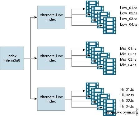 如图所示,有一个主要的m3u8格式Playlist文件,里面可以包含下级的m3u8文件,客户端会再去索引下级的m3u8,继续解析下级的Playlist文件获取最终的TS流文件的http请求地址与时间段。
