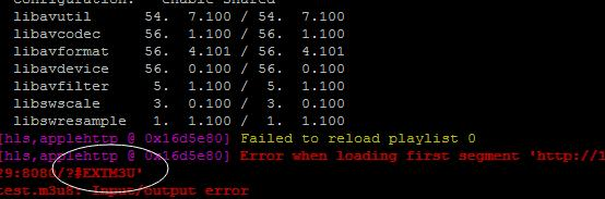 (#EXT-X-MEDIA-SEQUENCE或#EXT-X-TARGETDURATION必须存在任意一个,前者是定义ts流文件的序号。去掉会报错:无效文件)