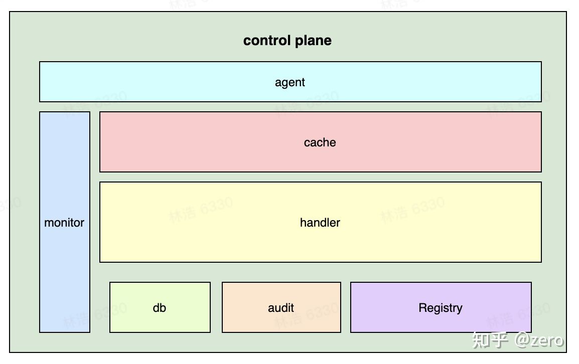 控制面(control plane):用于帮助service mesh 来进行服务发现、流量治理等。