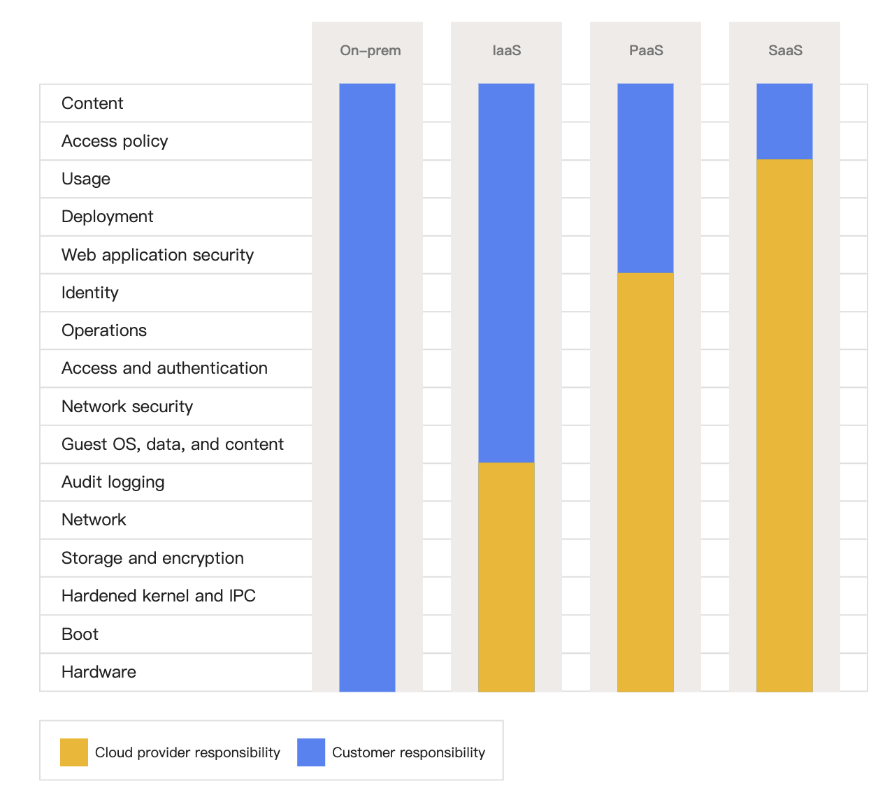 云提供商始终负责底层网络和基础架构,并且客户始终负责其访问政策和数据。