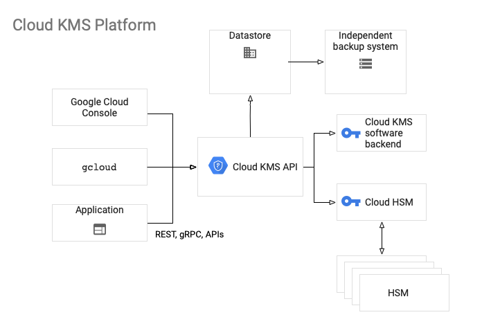 • 耐用性。Cloud KMS 符合 Google Cloud 的最高耐用性标准。为了帮助防止数据损坏并验证数据能否成功解密,Cloud KMS 会定期扫描并备份所有密钥材料和元数据。
