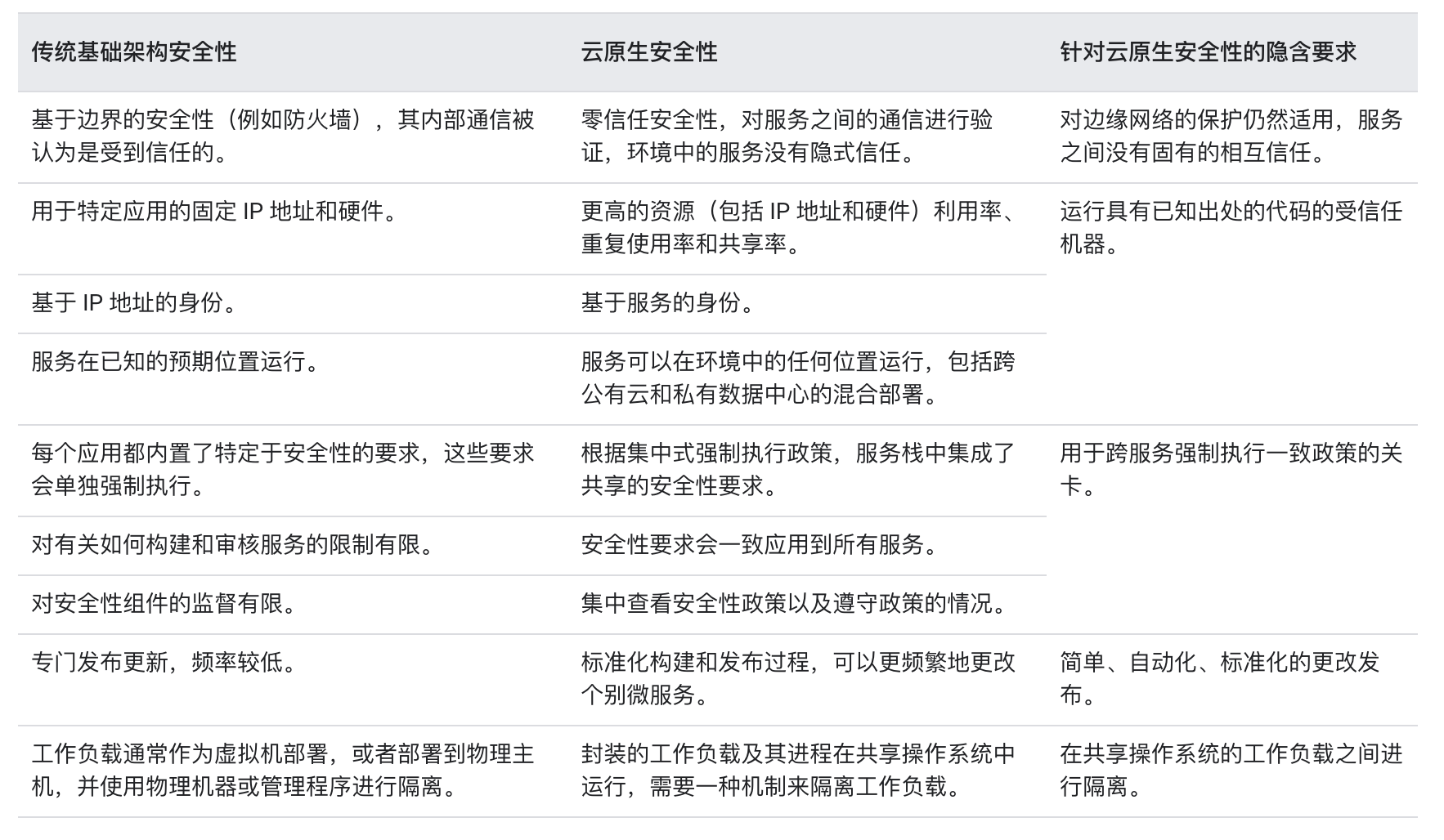 下图对比了传统基础架构安全性方面与云原生架构中的安全性方面。更多细节参考:https://cloud.google.com/docs/security/beyondprod?hl=zh-cn