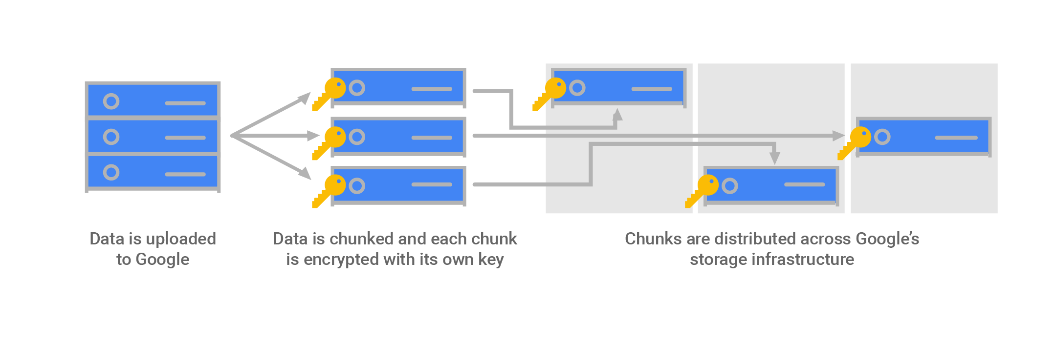 Google 的基础架构提供各种存储服务和分布式文件系统(例如 Spanner 和 Colossus)以及一个中央密钥管理服务。