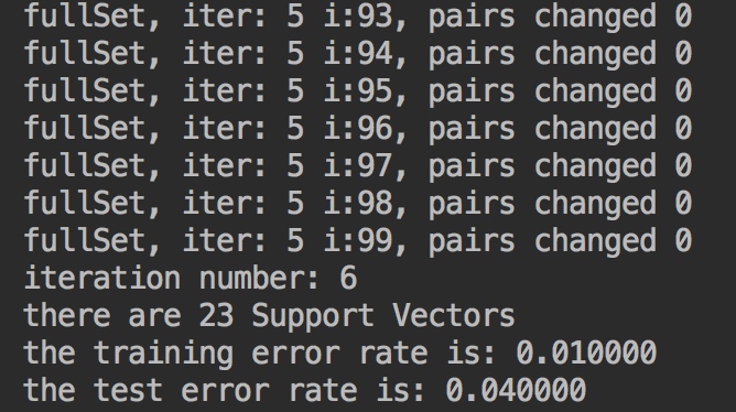工作原理是:每次循环中选择两个alpha进行优化处理。一旦找到一对合适的alpha,那么就增大其中一个同时减小另一个